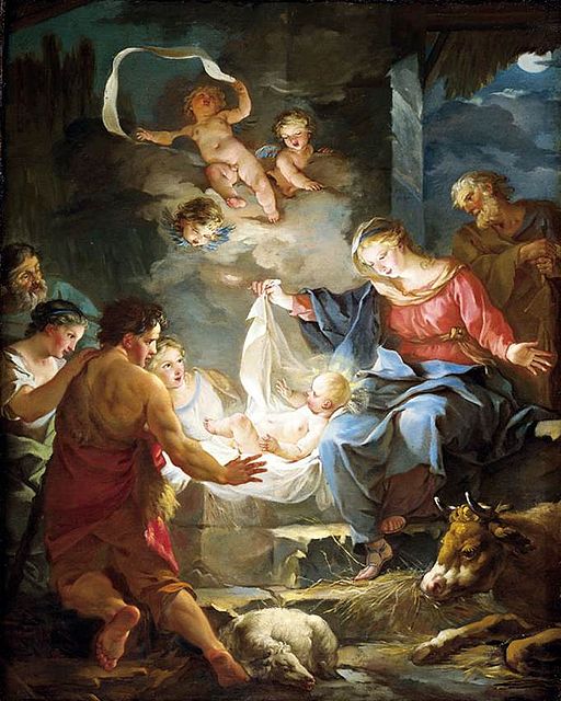 在那區有些牧人露宿,守夜看守羊群。有上主的一個天使站在他們身邊,上主的光耀環照著他們,他們便非常害怕。天使向他們說:「不要害怕!看,我給你們報告一個為全民族的大喜訊:今天在達味城中,為你們誕生了一位救世者,他是主默西亞。這是給你們的記號:你們將要看見一個嬰兒,裹著襁褓,躺在馬槽裏。」忽有一大隊天軍,同那天使一起讚頌天主說:「天主受享光榮於高天,主愛的人在世享平安。」(路加福音2:1-14)