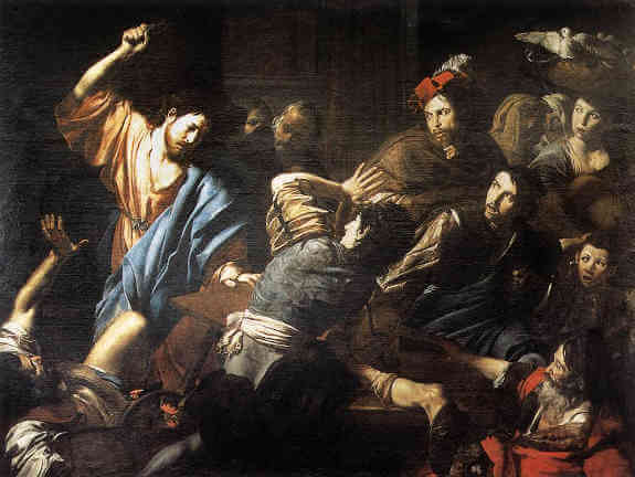 耶稣引起了大骚动。祂与那些将圣殿变成商场的人直接起了冲突。那些贩卖牲畜鸟禽作为献祭的人一心只想利用犹太信仰中的神圣仪式来图利自己。他们并不是为天主服务;他们是为自己的钱包服务。而这样的行径招来了天主的义怒。